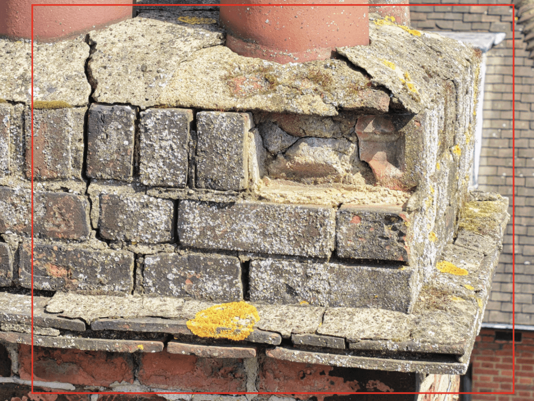 Defects hidden behind the chimney stack