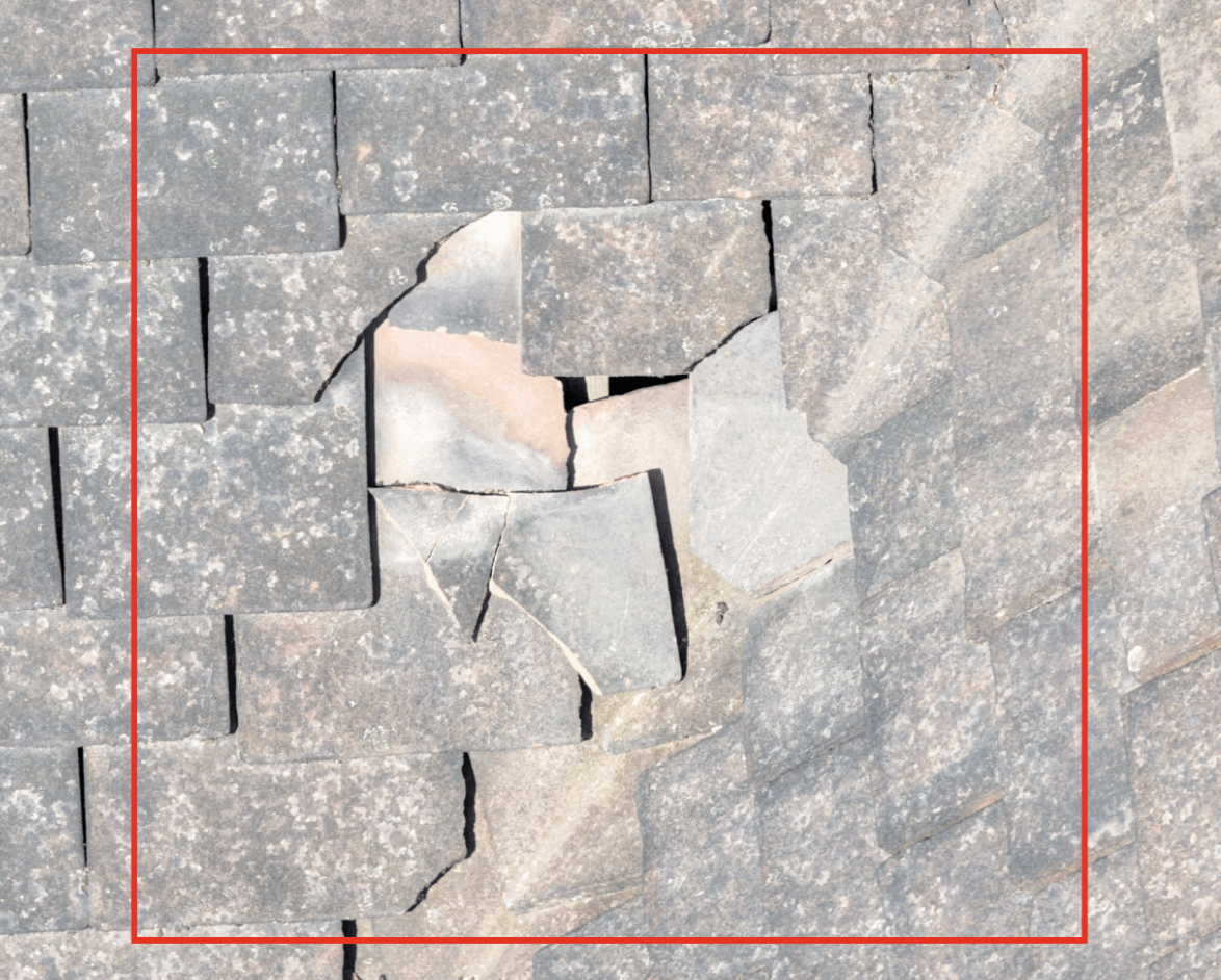 Slipped and broken roof tiles across multiple sections