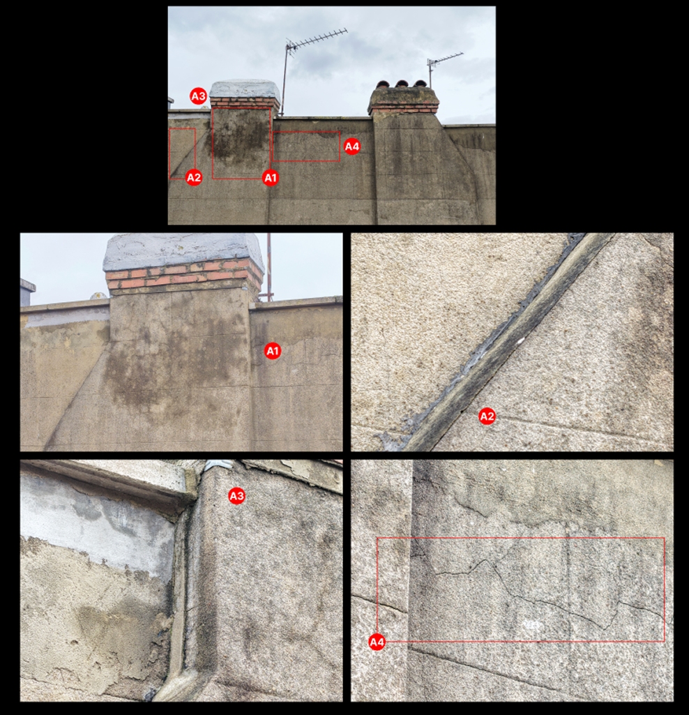 This level of clarity allows contractors to scope works accurately — focusing on chimney render repairs, junction detailing and associated remedial works — instead of undertaking unnecessary or overly broad repairs.