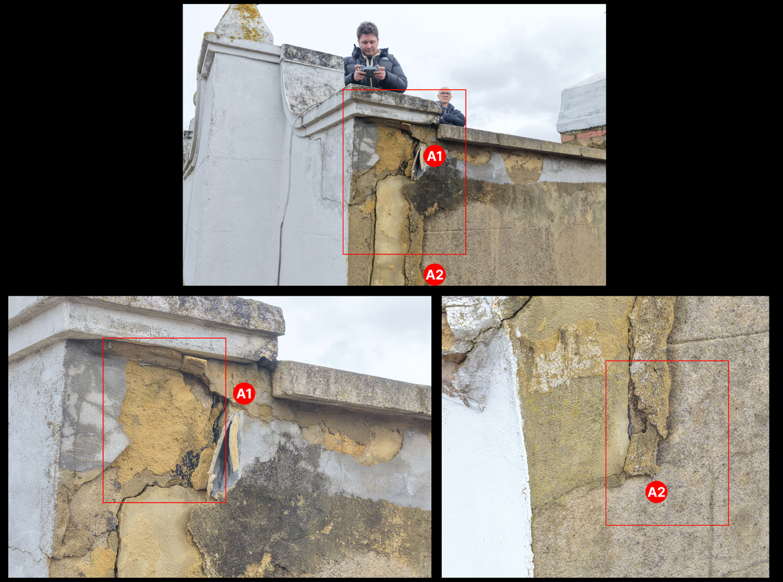By combining drone imagery with internal moisture readings, we were able to clearly identify the likely source of water ingress without the need for immediate scaffolding or invasive investigation.